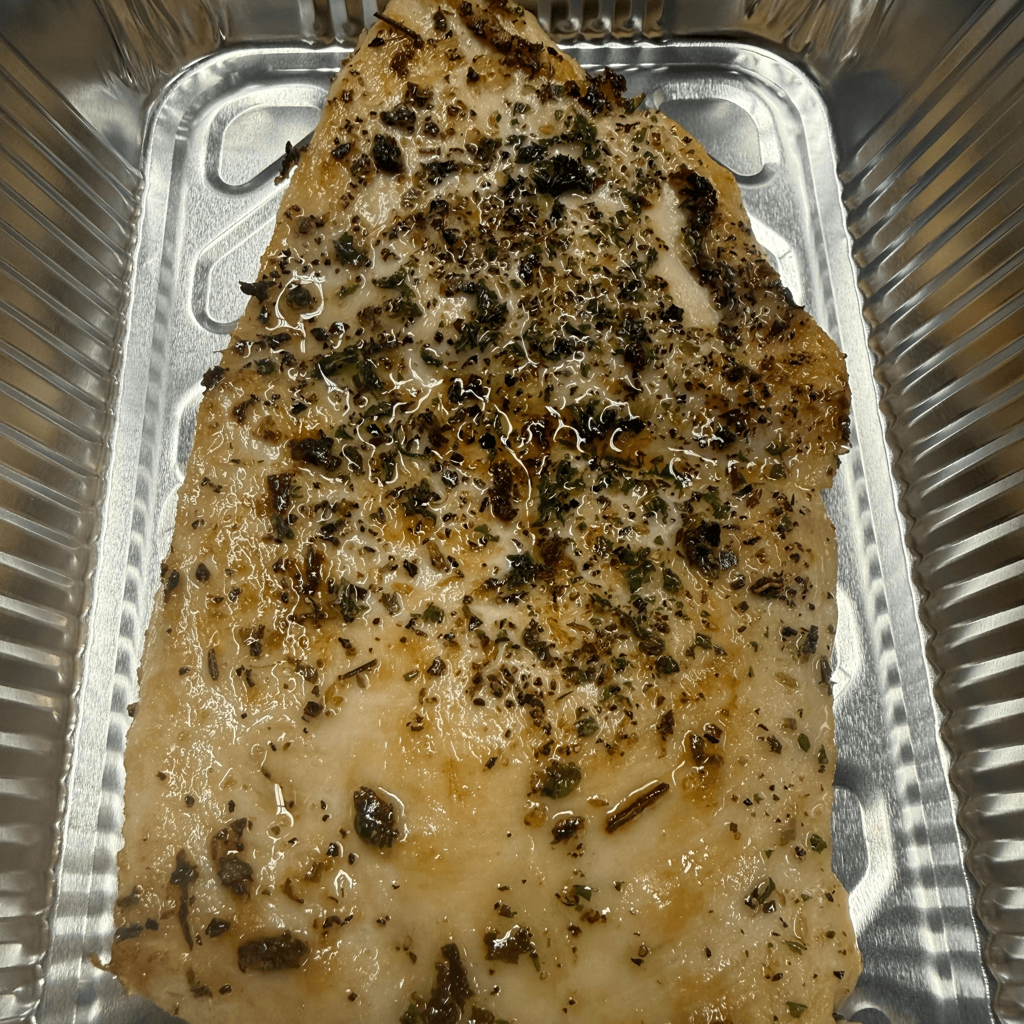 Sautéed breast in lemon white wine sauce and side of roasted potatoes.