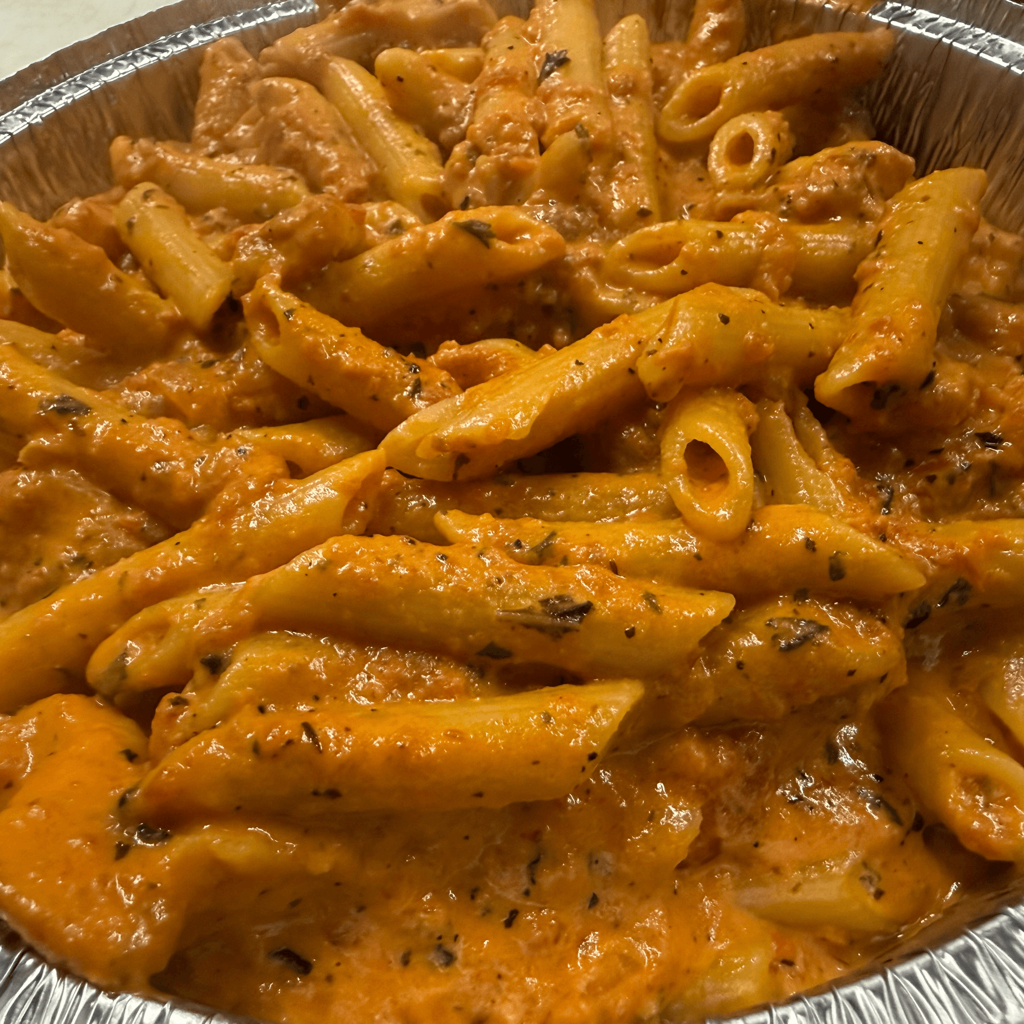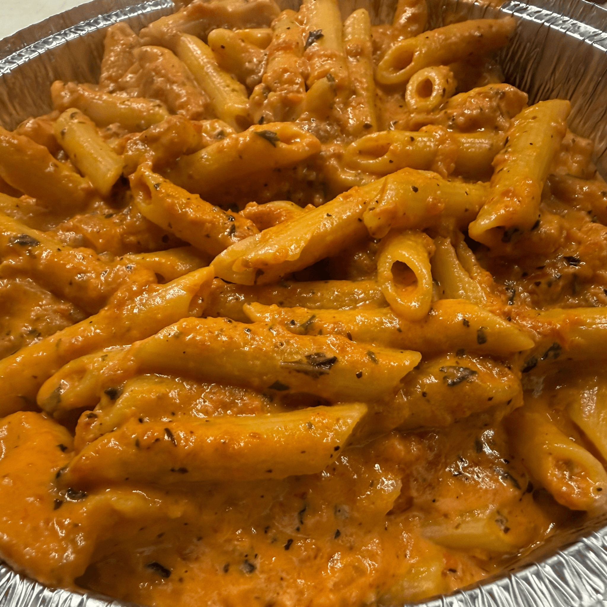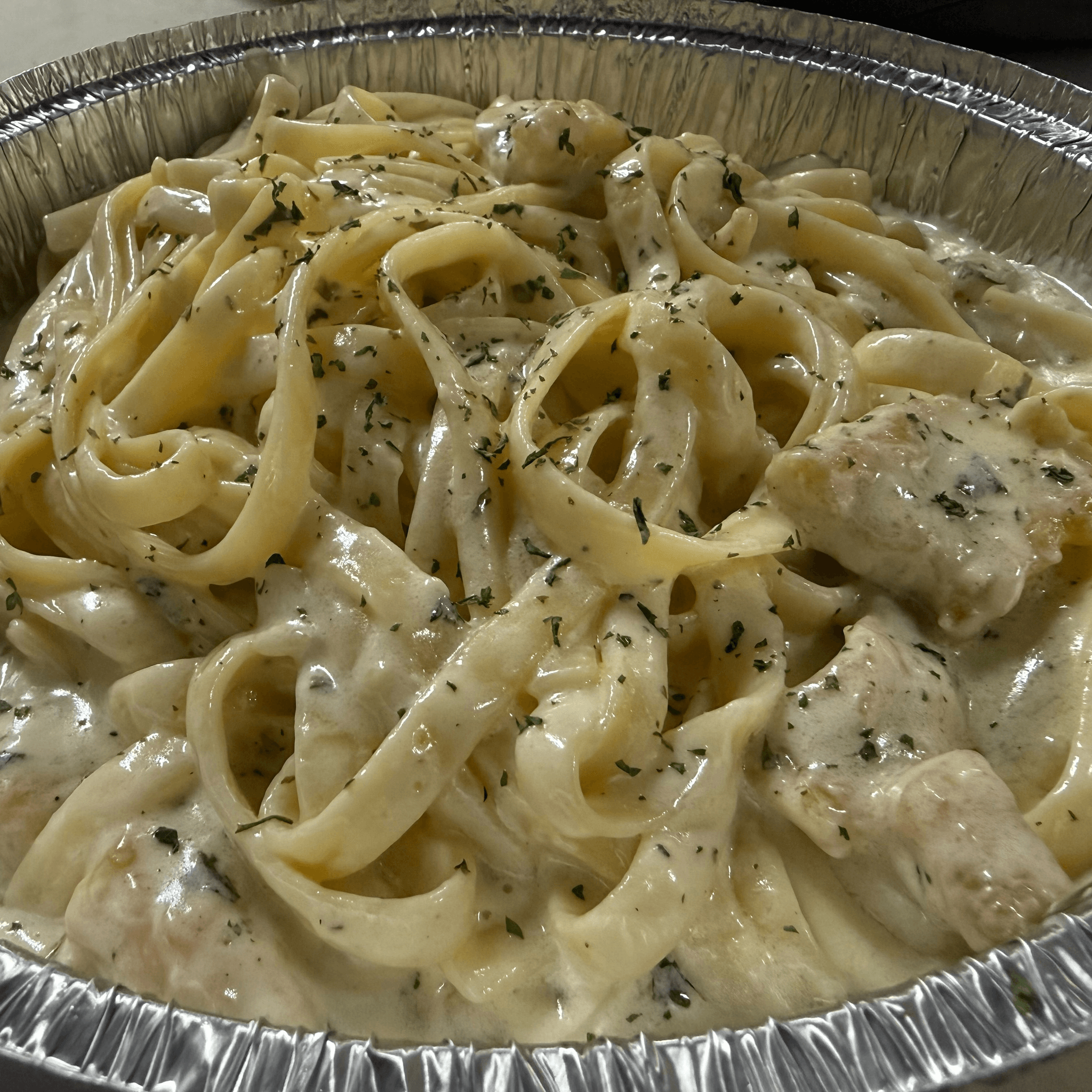 Fettuccine, chicken, and mushrooms baked with alfredo and melted mozzarella.